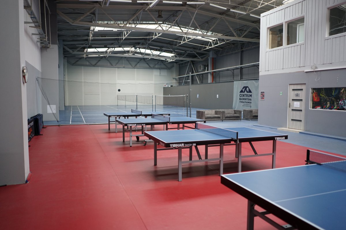 W naszym centrum zagrasz na jednym z 8 profesjonalnych kortów do badmintona i stołów do tenisa. Wszystko w krytej, ogrzewanej hali.