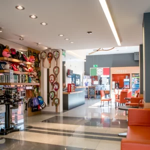 Aby zapewnić maksymalny komfort naszym klientom, dysponujemy również klimatyczną kawiarenką, sklepikiem sportowym, przestronnymi szatniami oraz bezpłatnym parkingiem.