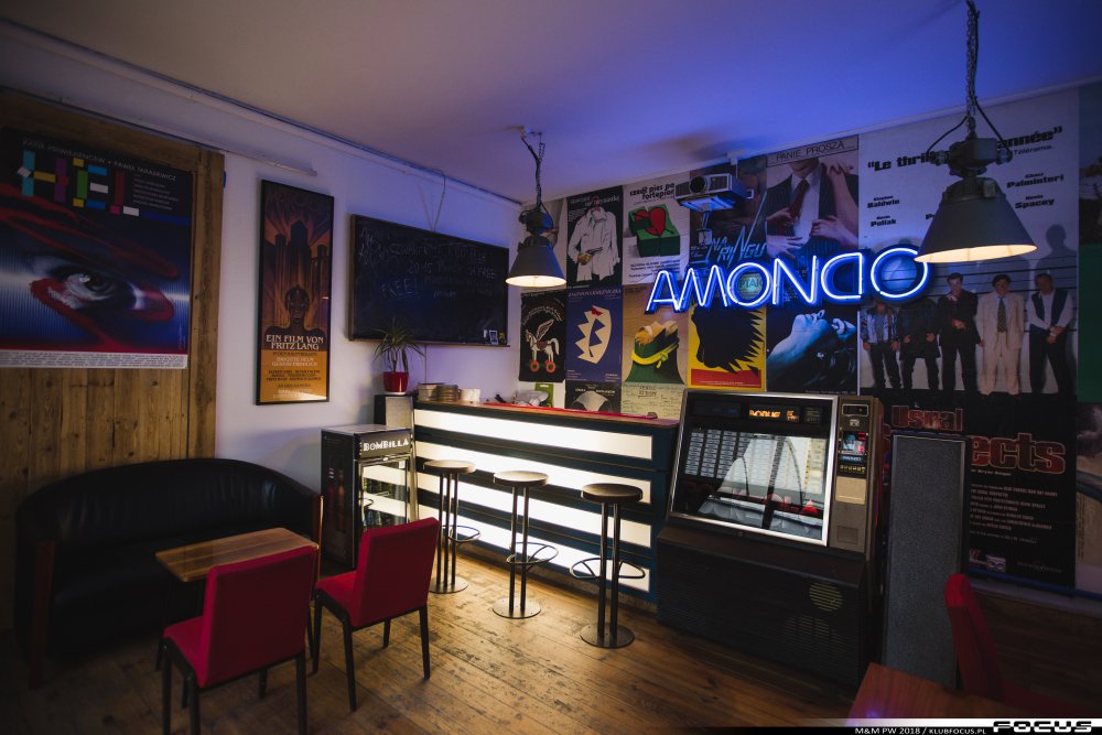 Jest tu kameralnie, oldschoolowo z niepowtarzalnym klimatem retro. System neonów, oryginalne fotele kinowe oraz podświetlany bar z klubokawiarnią sprawiają, że AMONDO to przestrzeń unikatowa.