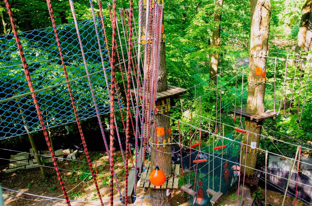 Park linowy trasa niska, średnia, wysoka, mega wysoka, tyrolska (rabaty)