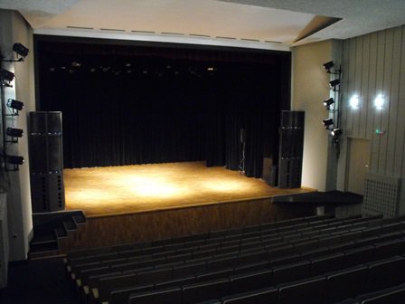 sala widowiskowa na 254 miejsca (ze sceną o wymiarach 9x9 m, garderobą, zapleczem sceny i aneksem hotelowym z własną kuchnią i łazienką)